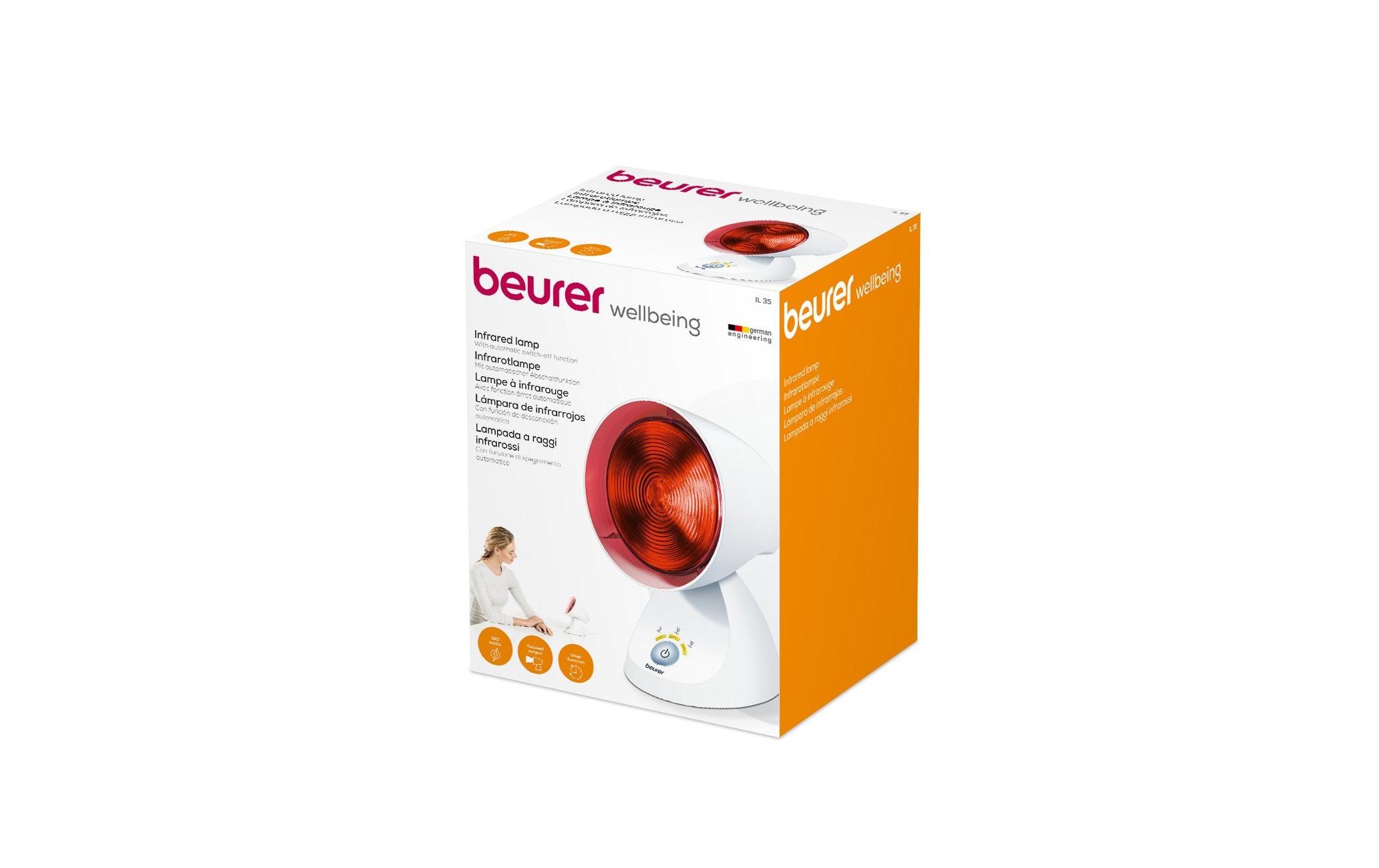 Die Beurer IL 35 Infrarotlampe liefert Ihnen wohltuende Wärme, verfügt über einen 3-stufigen elektronischen Timer und Abschaltautomatik. Die Neigung der Wärmelampe können Sie in 5 Stufen einstellen.