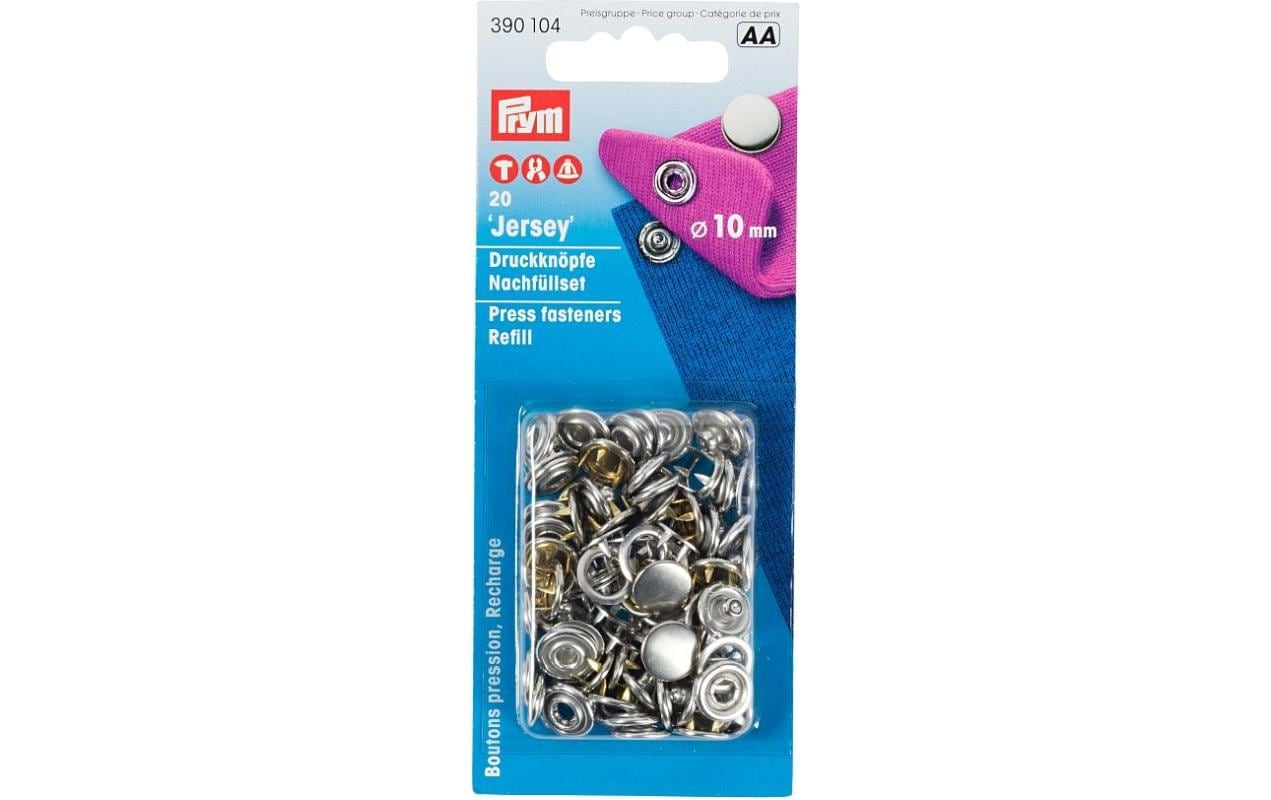 Für leichtere Stoffe wie Jersey sind die Prym Jersey-Druckknöpfe die richtige Wahl. Sie sind in verschiedenen Grössen und Farben erhältlich, darunter auch bunte Varianten, die jedem Kleidungsstück einen frischen Look verleihen können. Diese Druckknöpfe sind besonders einfach anzubringen und bieten sicheren Halt, ohne den Stoff zu beschädigen.