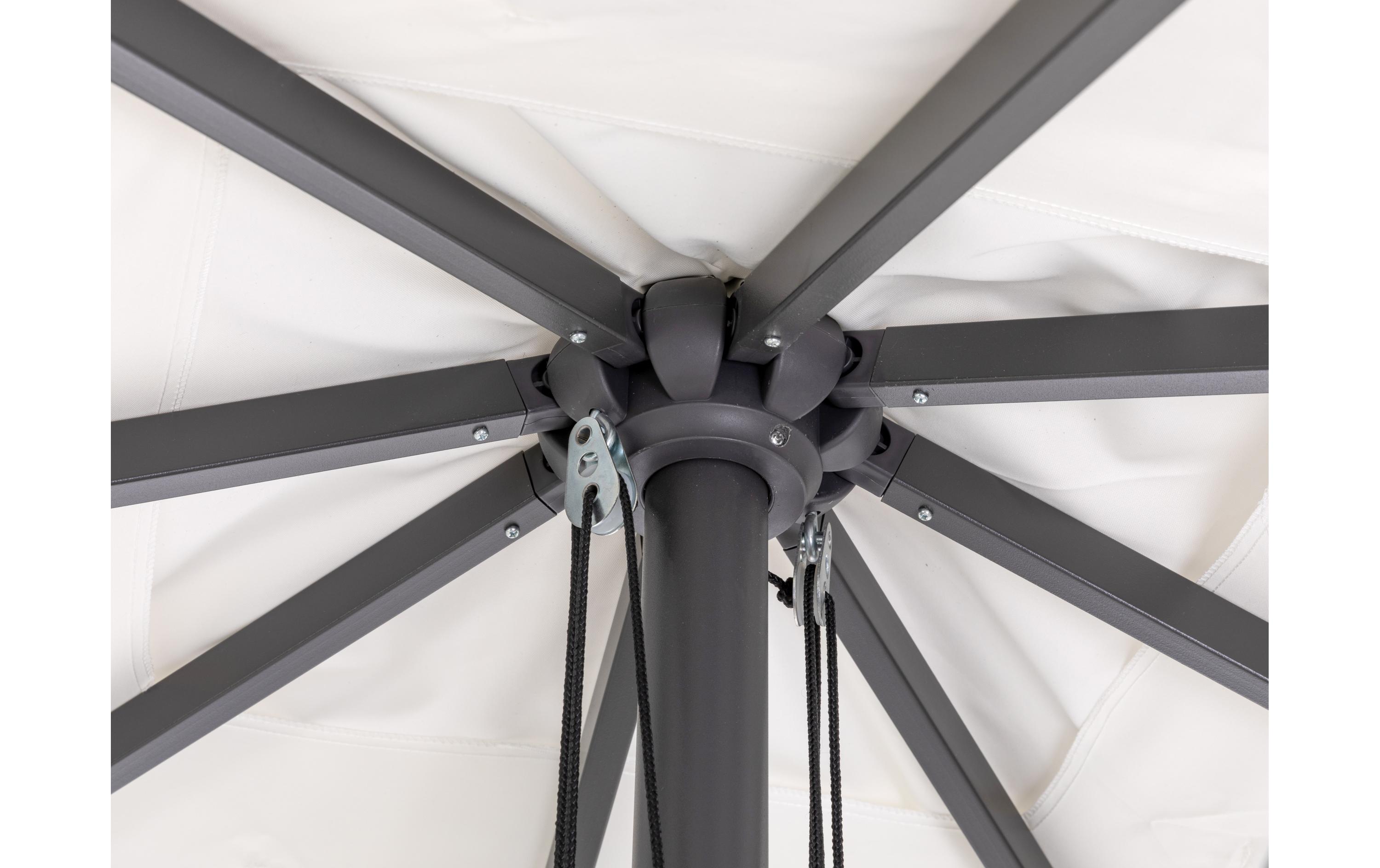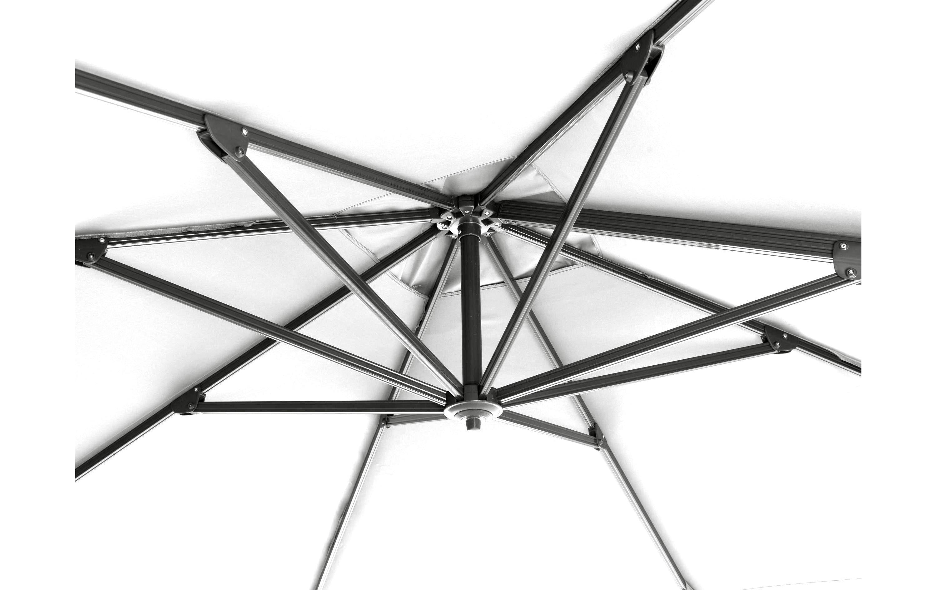 Hängende Sonnenschirme wie der COCON Mini-Roma oder der TR-031 sind perfekt für grössere Flächen, da sie ohne störenden Mittelstock auskommen und somit mehr Platz für Möbel und Gäste bieten. Diese Modelle sind besonders praktisch, wenn du den Schatten flexibel über einem Tisch oder einer Lounge-Gruppe platzieren möchtest.