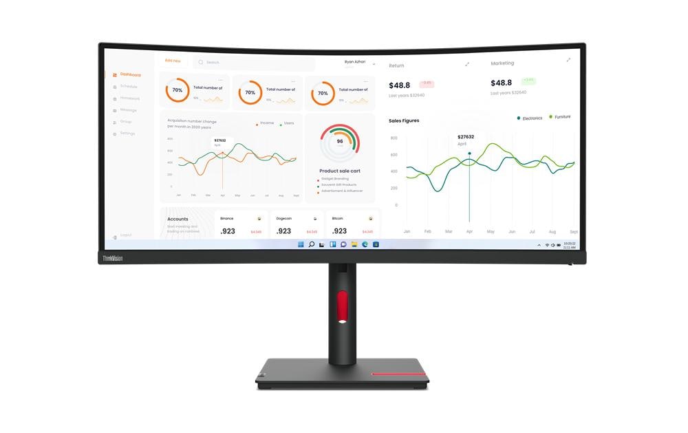 · Ideal für professionelle Anwendungen überzeugt der Lenovo ThinkVision T34w-30 mit einem ultrabreiten Display und hoher Auflösung.
