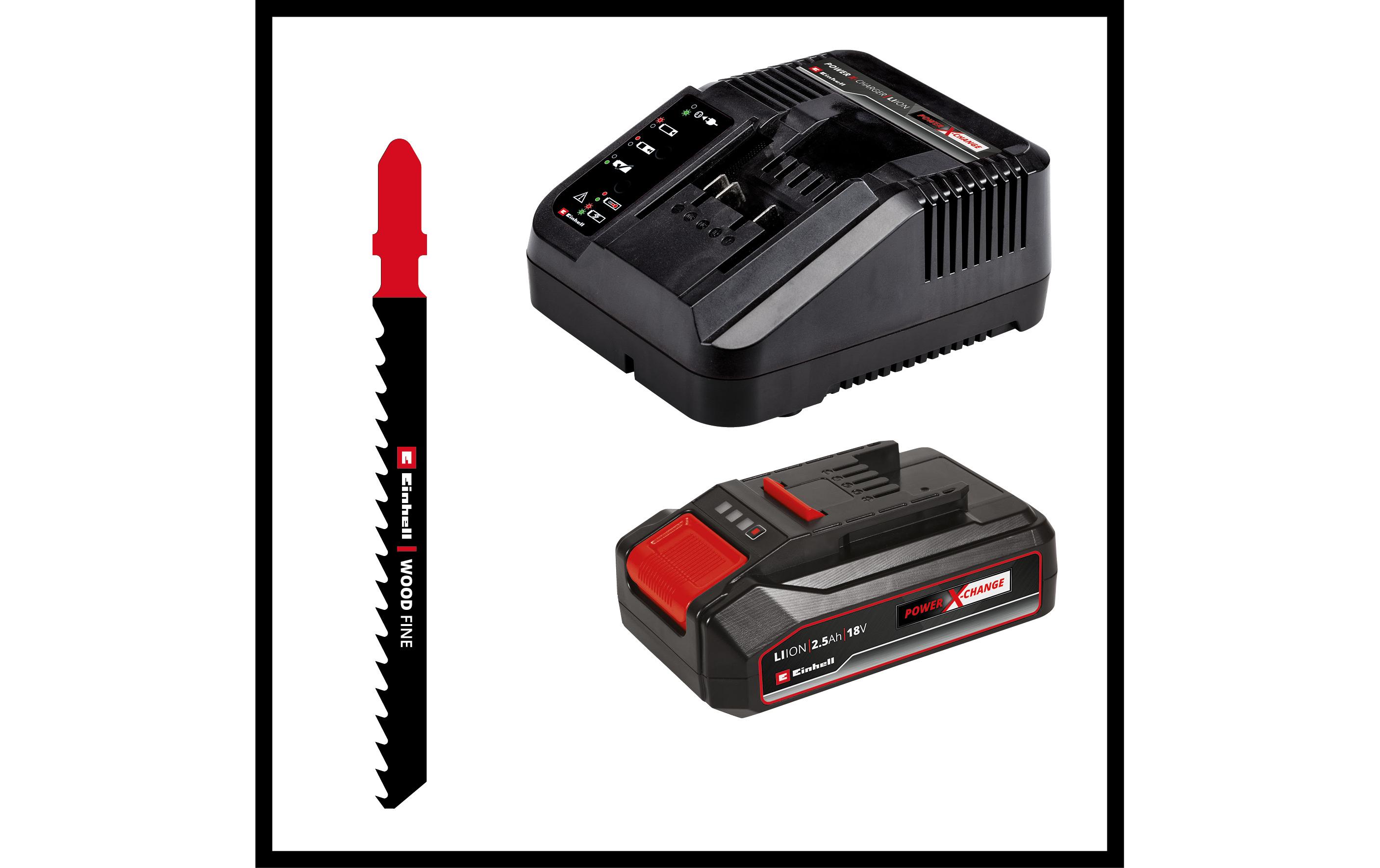 Die Einhell Akku-Stichsäge TC-JS 18/70 Li (1x 2.5 Ah) bietet vielseitige Einsatzmöglichkeiten. Als Mitglied der Power X-Change-Familie bietet sie eine hohe Flexibilität bei diversen Arbeiten. Mit einer Leerlaufdrehzahl von 2.700 U/min ermöglicht sie präzise Schnitte bis zu 70 mm tief in Holz und 8 mm in Stahl. Für einen schnellen Sägefortschritt sorgt der zuschaltbare Pendelhub. Die T-Schaft-Aufnahme ermöglicht einen schnellen und werkzeuglosen Sägeblattwechsel. Für beste Sicht beim Arbeiten sorgen die Staubabblasfunktion und der Absauganschluss. Geliefert wird mit 1x 2.5 Ah Power X-Change Akku, 1x Ladegerät, 1x Stichsägeblatt für Holz, 1x Absaugadapter und 1x Innensechskantschlüssel.