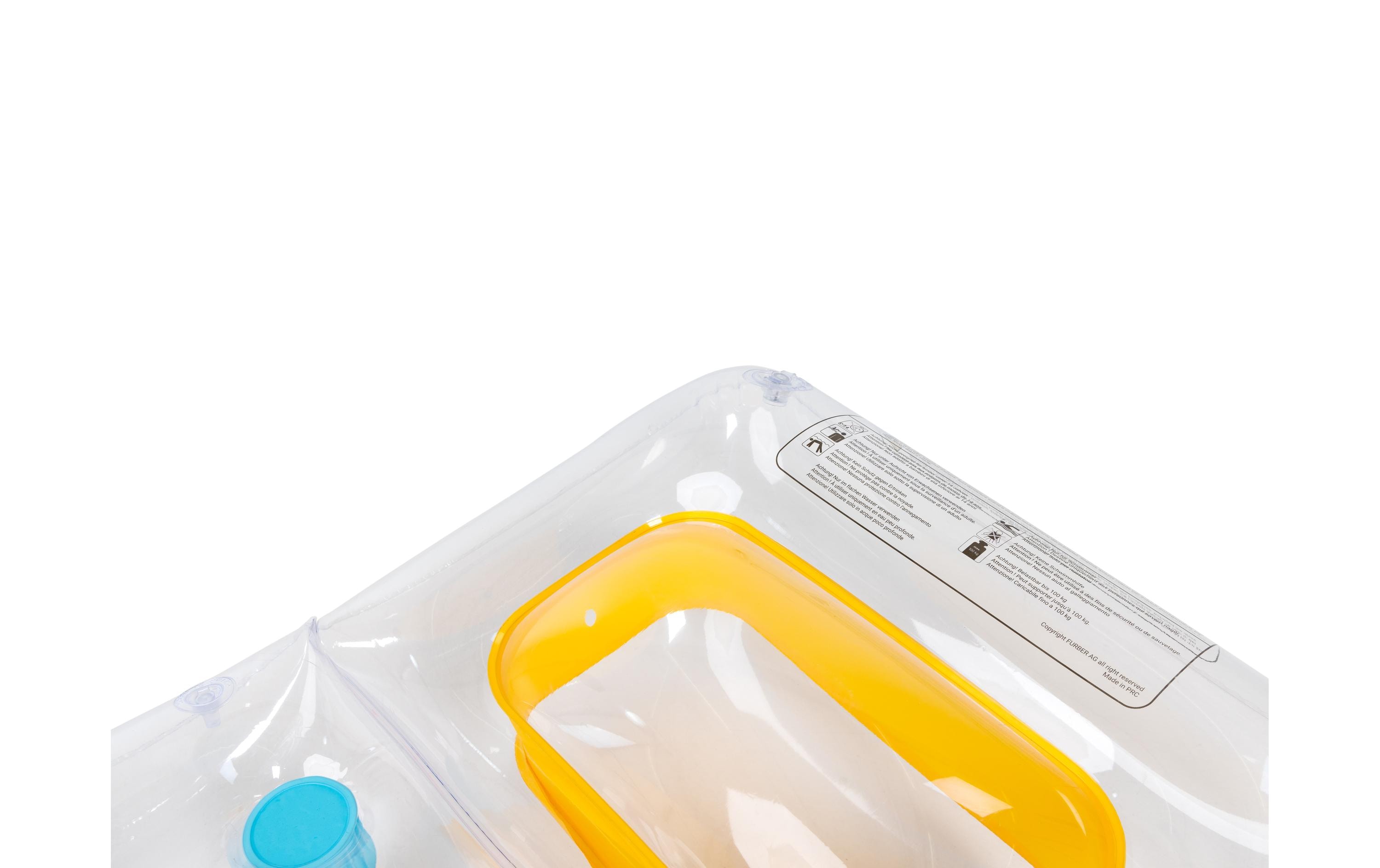 Aufblasbare Matratze im transparenten Look mit farbigen Details
