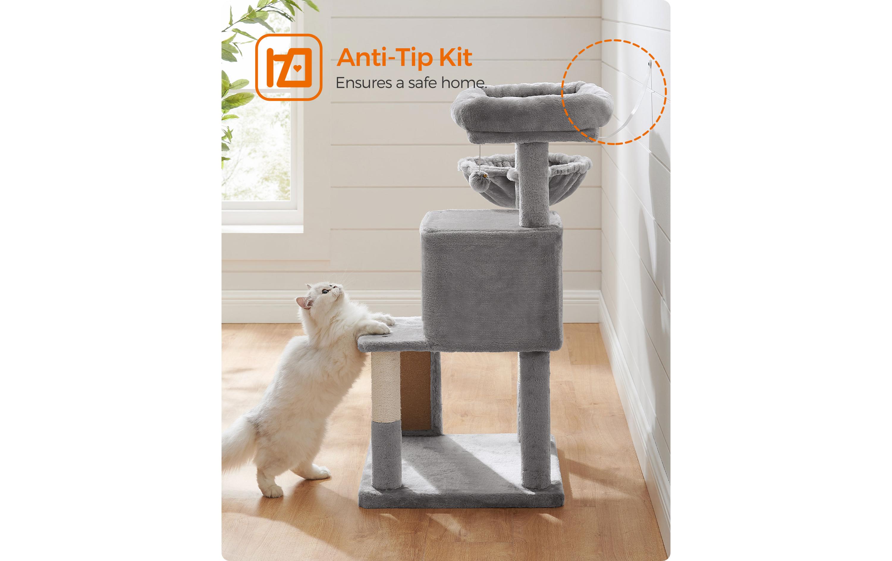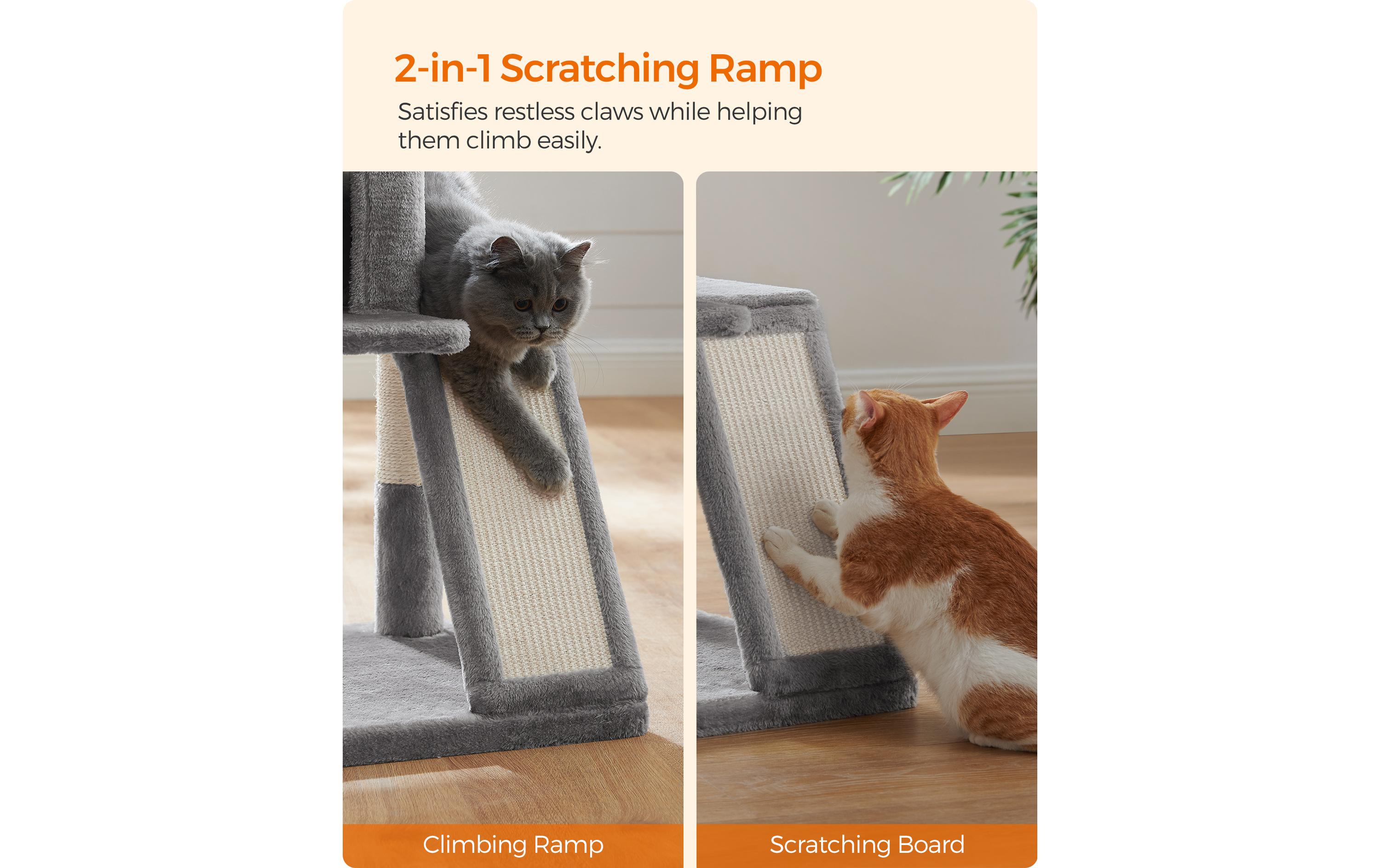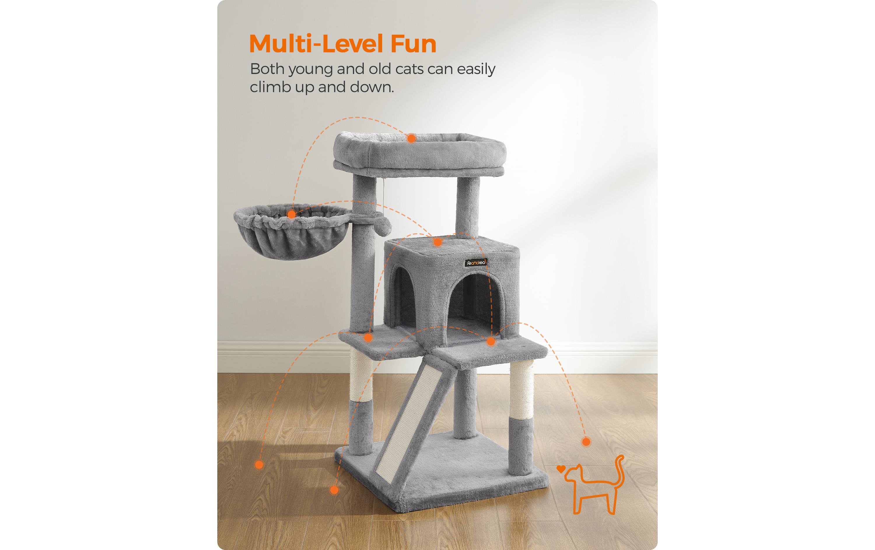 Feandrea Kratzbaum mit Kratzbrett, 96 cm, Grau/Beige