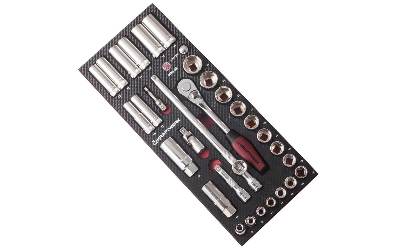 Ratschen- und Steckschlüssel-Sets sind unverzichtbare Begleiter in jeder Werkstatt. Unsere Kraftwerk Ratschen-Sets, wie das 12-teilige EVA3 oder das 22-teilige Pro Line Set, bieten dir die nötige Flexibilität und Präzision für deine Arbeiten. Die ergonomischen Griffe sorgen für einen sicheren Halt und erleichtern das Arbeiten auch in schwierigen Positionen. Mit diesen Sets bist du bestens ausgestattet, um Schraubverbindungen schnell und effizient zu lösen oder zu befestigen.