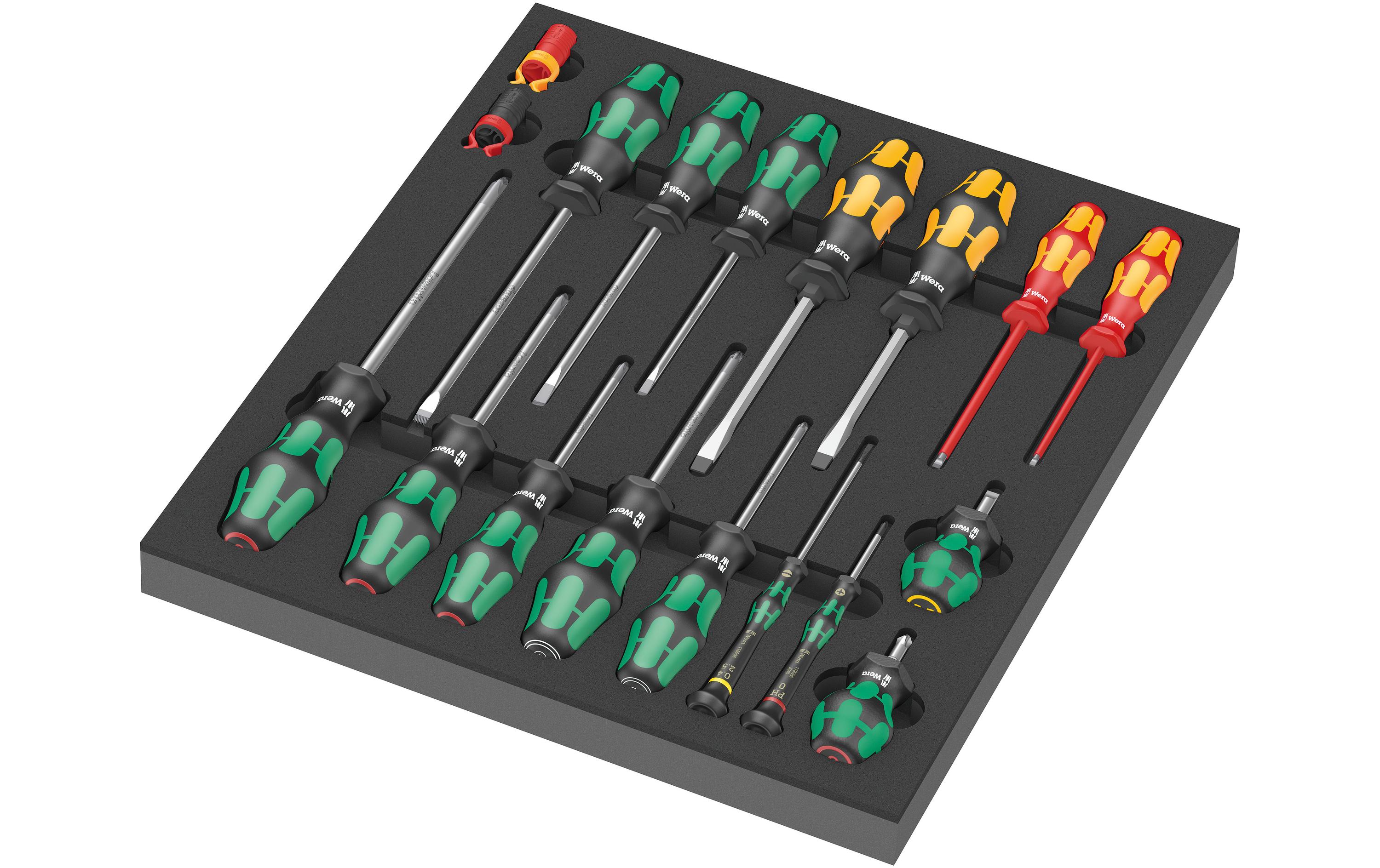 Ein gutes Schraubendreher-Set darf in keiner Werkzeugkiste fehlen. Unsere Kraftwerk Schraubenzieher-Sets, wie das 7-teilige KK-T oder das 9-teilige EVA3, bieten dir eine Auswahl an verschiedenen Grössen und Formen, um jede Schraube sicher zu greifen. Die präzise Verarbeitung und die hochwertigen Materialien garantieren eine lange Lebensdauer und ein angenehmes Arbeiten.