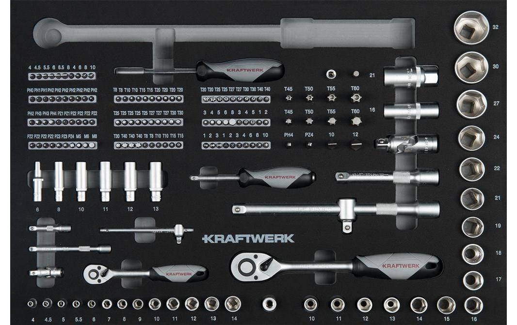 Ratschen- und Steckschlüssel-Sets sind unverzichtbare Begleiter in jeder Werkstatt. Unsere Kraftwerk Ratschen-Sets, wie das 12-teilige EVA3 oder das 22-teilige Pro Line Set, bieten dir die nötige Flexibilität und Präzision für deine Arbeiten. Die ergonomischen Griffe sorgen für einen sicheren Halt und erleichtern das Arbeiten auch in schwierigen Positionen. Mit diesen Sets bist du bestens ausgestattet, um Schraubverbindungen schnell und effizient zu lösen oder zu befestigen.