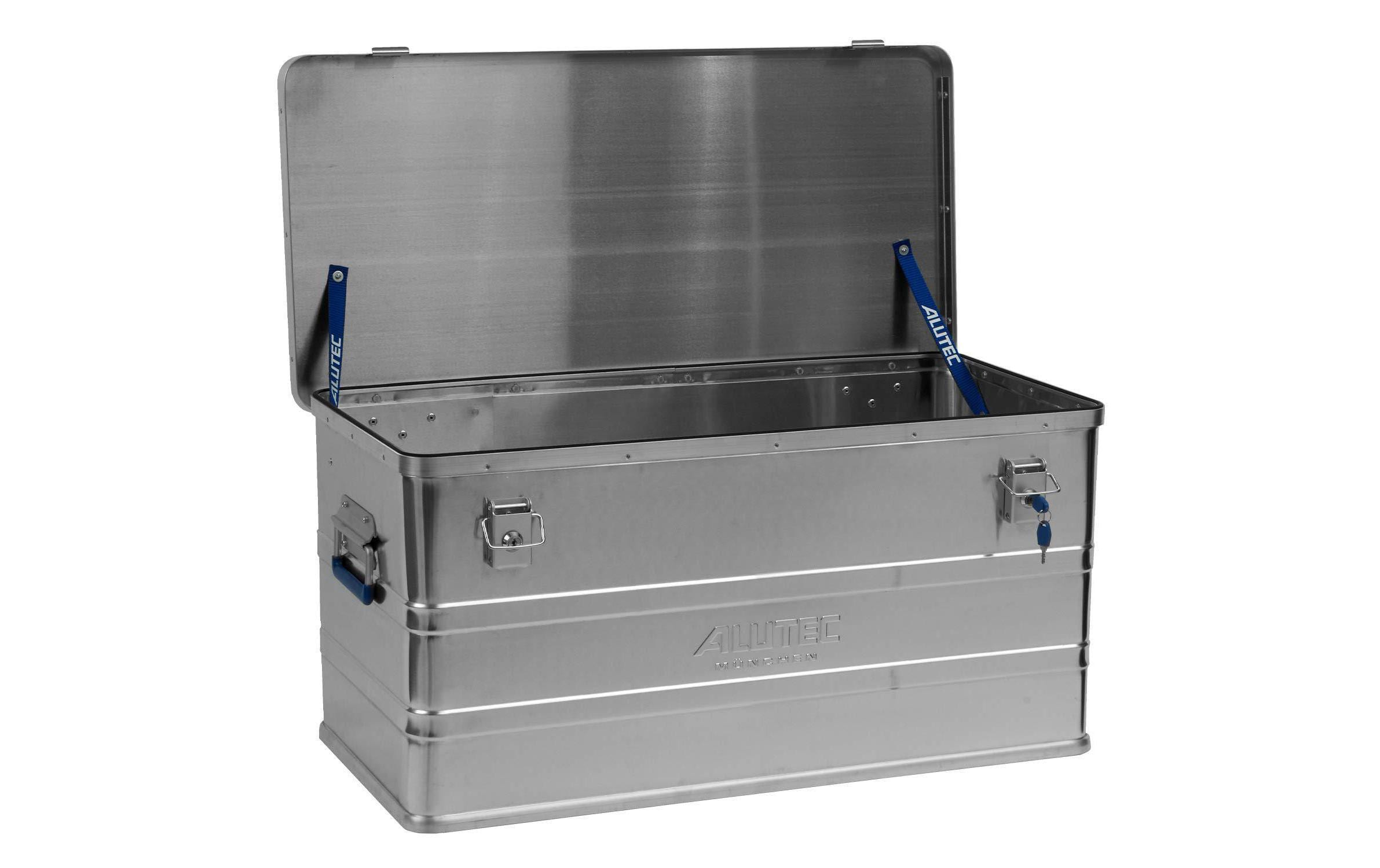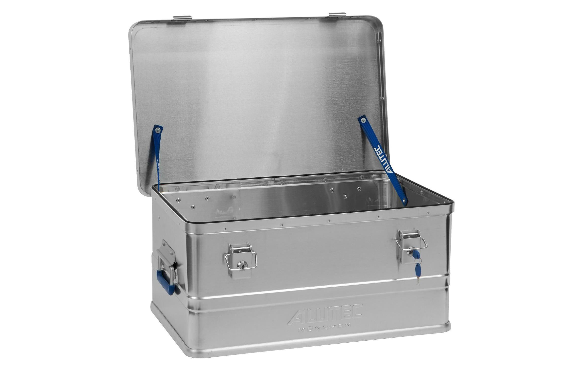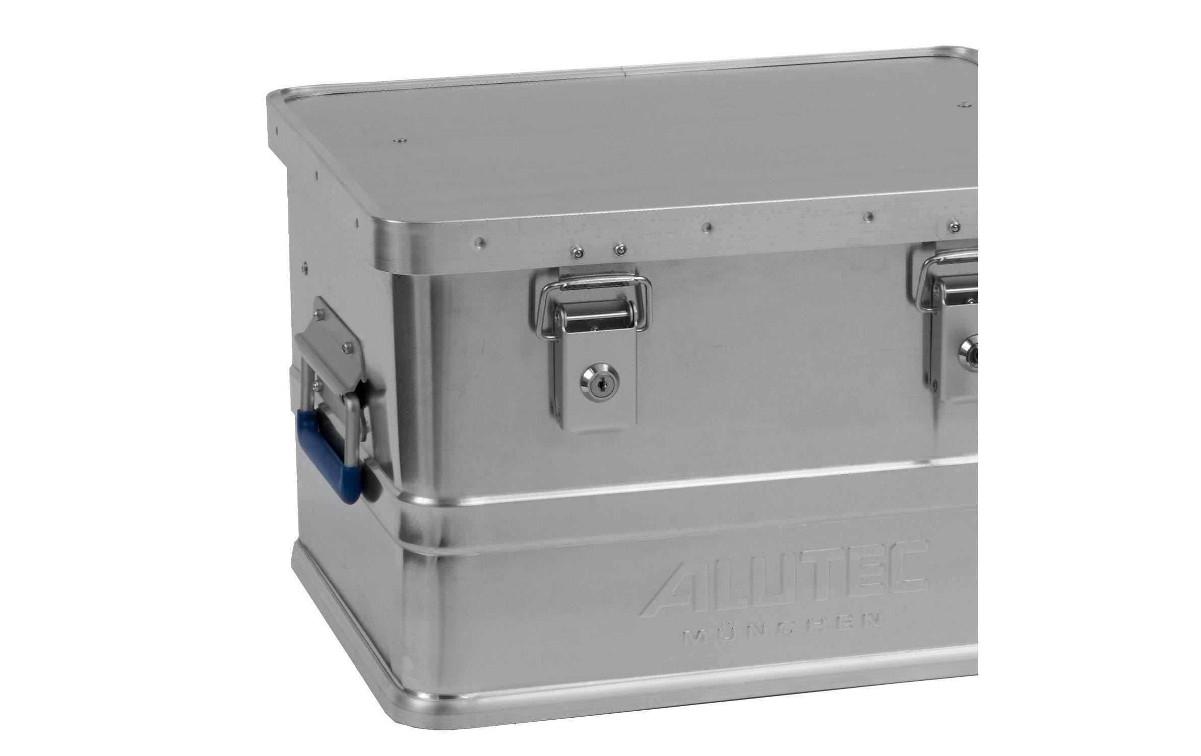 Die ALUTEC Aluminiumbox Comfort bietet eine weitere robuste Option für die Aufbewahrung. Mit ihren Abmessungen von 580 x 385 x 265 mm eignet sie sich ideal für den Transport und die Lagerung von Werkzeugen und Materialien, die besonderen Schutz benötigen. Die Aluminiumkonstruktion sorgt dafür, dass der Inhalt vor äusseren Einflüssen geschützt ist.