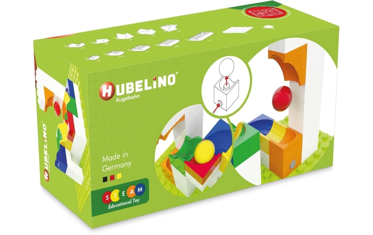 Mit dem Katapult und dem dazugehörigen Reflektor kann die Kugel bis zu sieben Ebenen nach oben geschossen werden. In der 41-teiligen Katapult Erweiterung sind neben zahlreichen Bausteinen, Bahnelementen, einer Grundplatte und Kugel insgesamt zwei Katapulte inkl. zwei Reflektoren enthalten. Mit dem Set kann eine kleine eigenständige Kugelbahn gebaut werden oder die Bauteile werden in eine grosse Kugelbahn integriert.- 100% kompatibel mit Bausteinen anderer Hersteller: Alle Produkte von Hubelino passen perfekt zu den Bausteinen anderer bekannter Hersteller und ergänzen dadurch den vorhandenen Bestand an Bausteinen optimal – Made in Germany für ausgezeichnete Produktqualität: Alle Produkte von Hubelino werden unter höchsten Qualitätsstandards ausschliesslich in Deutschland gefertigt – Spielerisch Lernen mit MINT Baukästen: Bei den Produkten von Hubelino steht ein ausgewogenes Verhältnis zwischen Spielspass und Lerneffekt im Vordergrund. Deshalb ist bei der Entwicklung neuer Produkte stets ein Lerninhalt im Fokus und wird durch cleveres Design zu einem Spielzeug mit pädagogischem Mehrwert