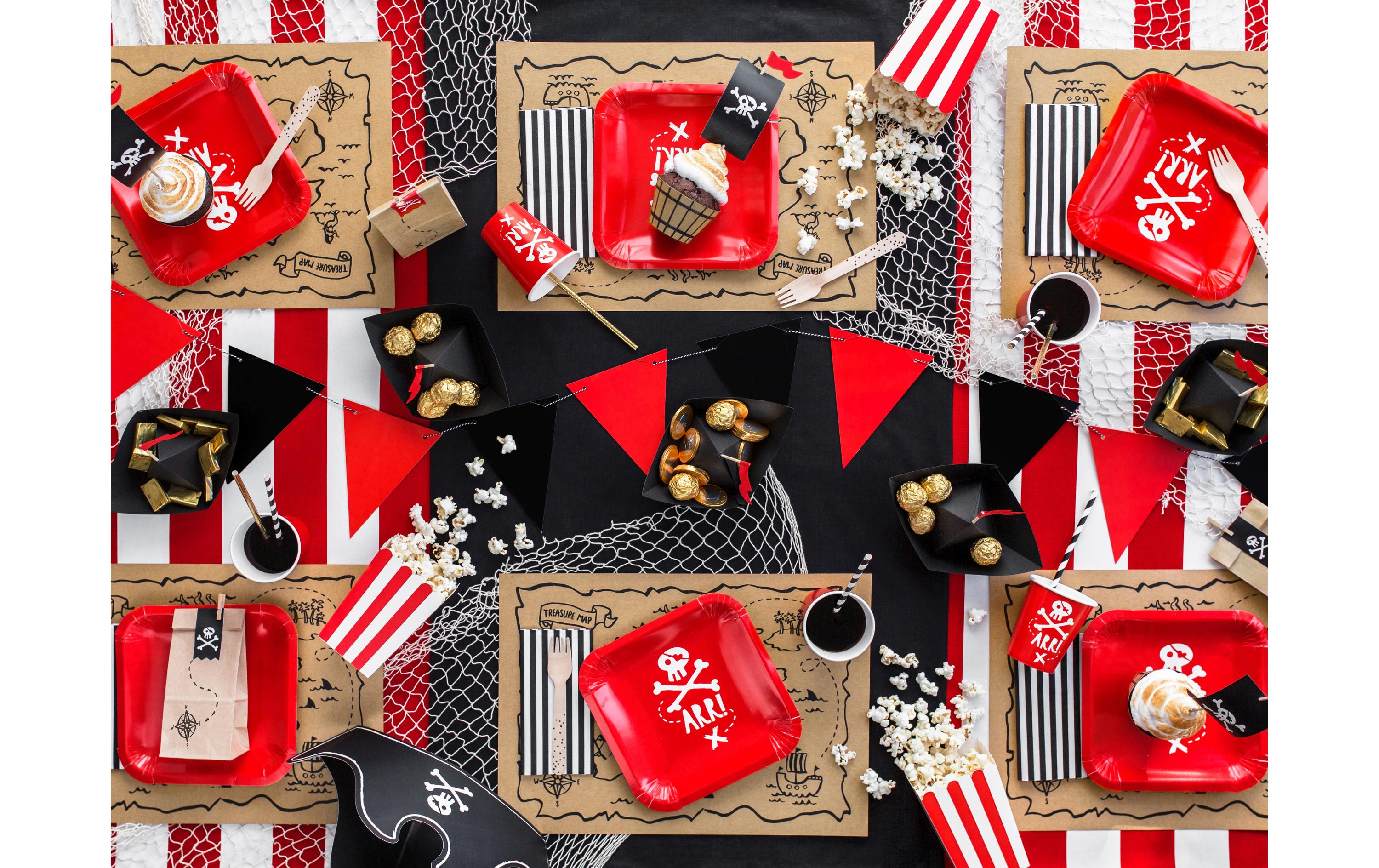 Die Papiertischsets in Form von Schatzkarten sind eine kreative und lustige Möglichkeit, den Geburtstagstisch zu dekorieren. Aus robustem Kraftpapier gefertigt, verleihen sie dem Tisch nicht nur rustikale Eleganz, sondern regen auch die Fantasie der Kinder an. Die einzigartige Schatzkartenform macht die Tischsets zu einem spannenden Element, das die kleinen Gäste begeistern wird.