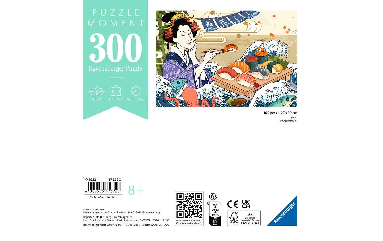 Das Ravensburger Puzzle Moment ist ein 300-teiliges Premium-Puzzle für Erwachsene. Das Motiv, eine Sushi-Bar, ist trendig und frisch und sorgt für viel Spass beim Puzzeln.