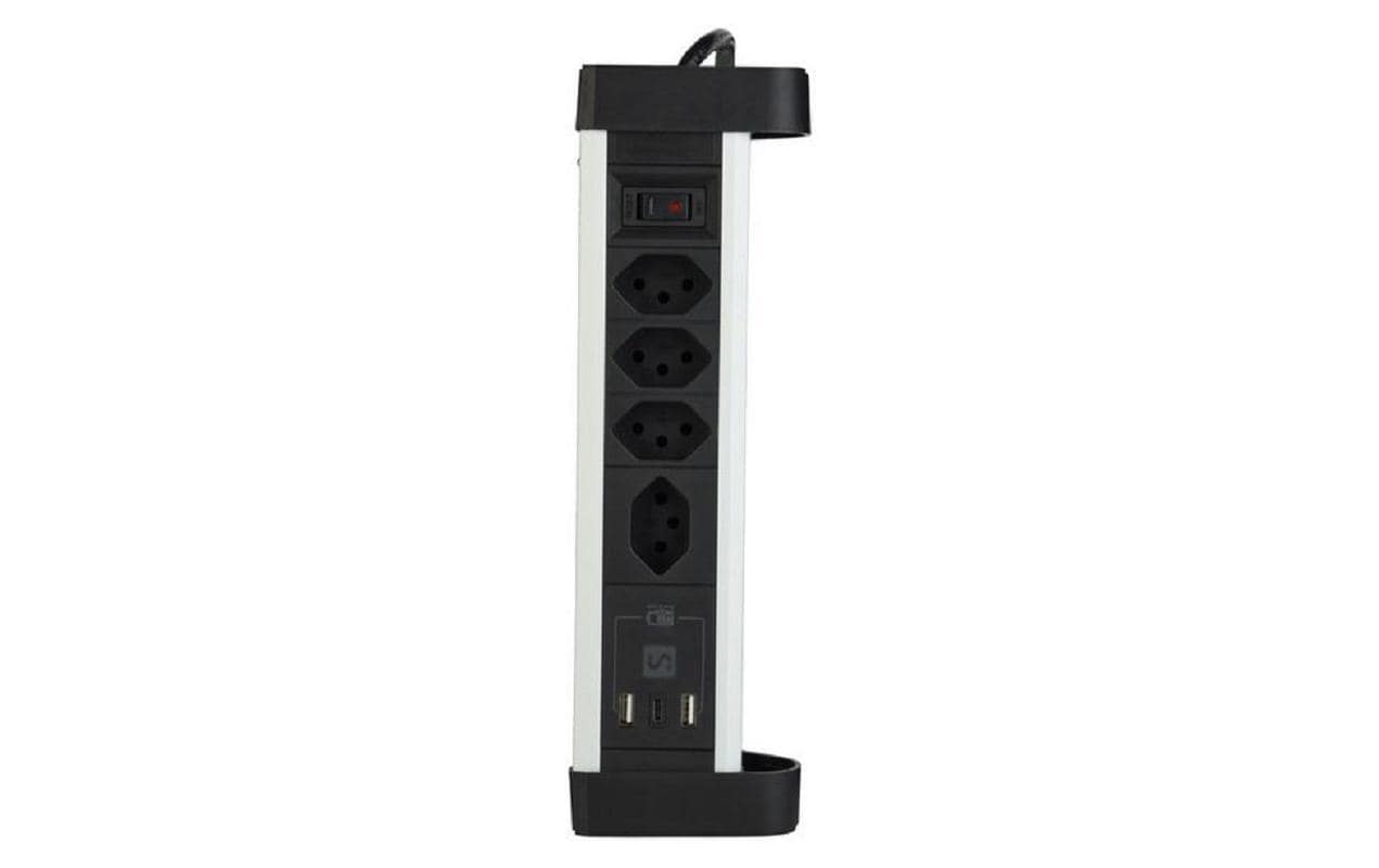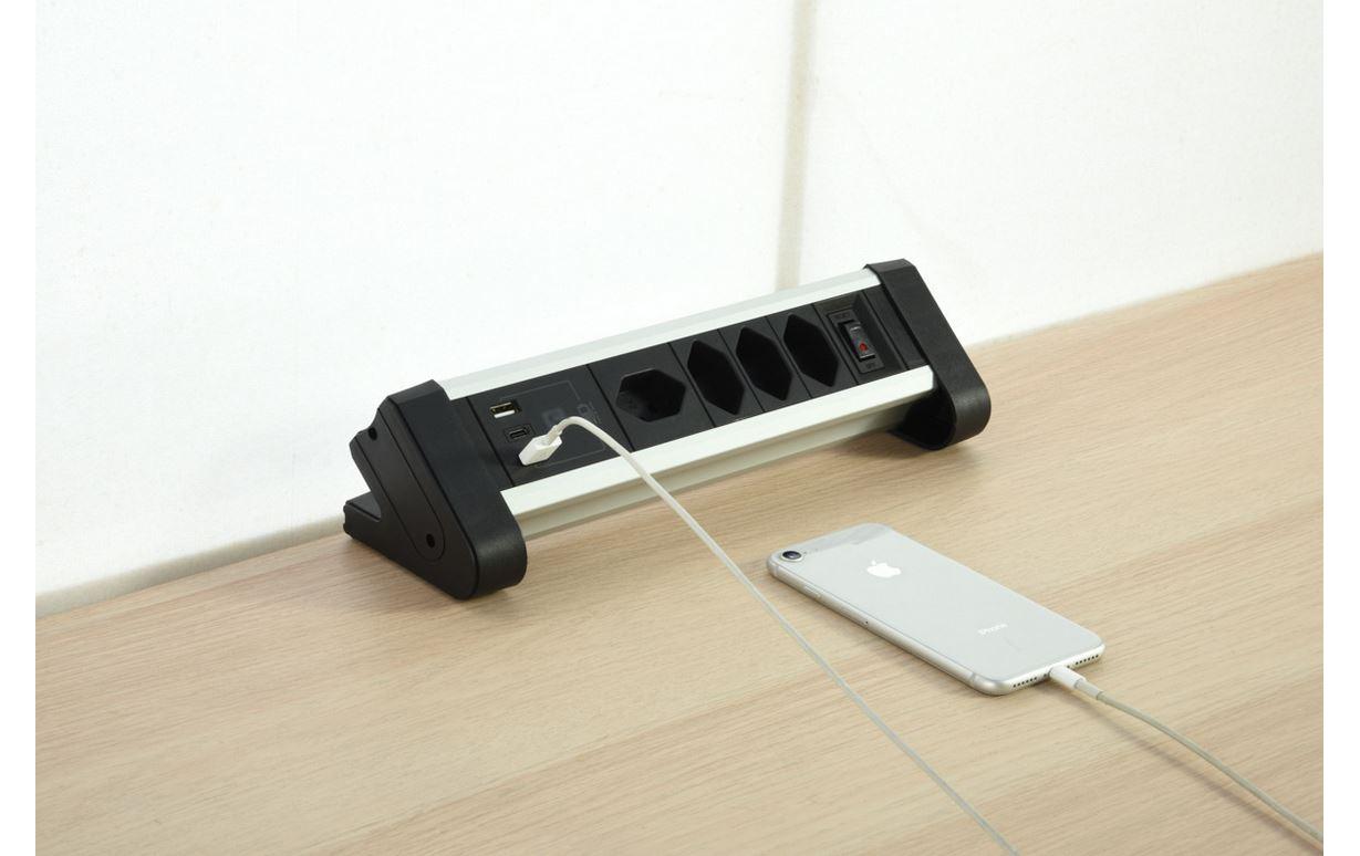 Schönenberger Tischsteckdosenleiste Alu 4× T13, 1x USB-C, 2x USB-A, 2 m
