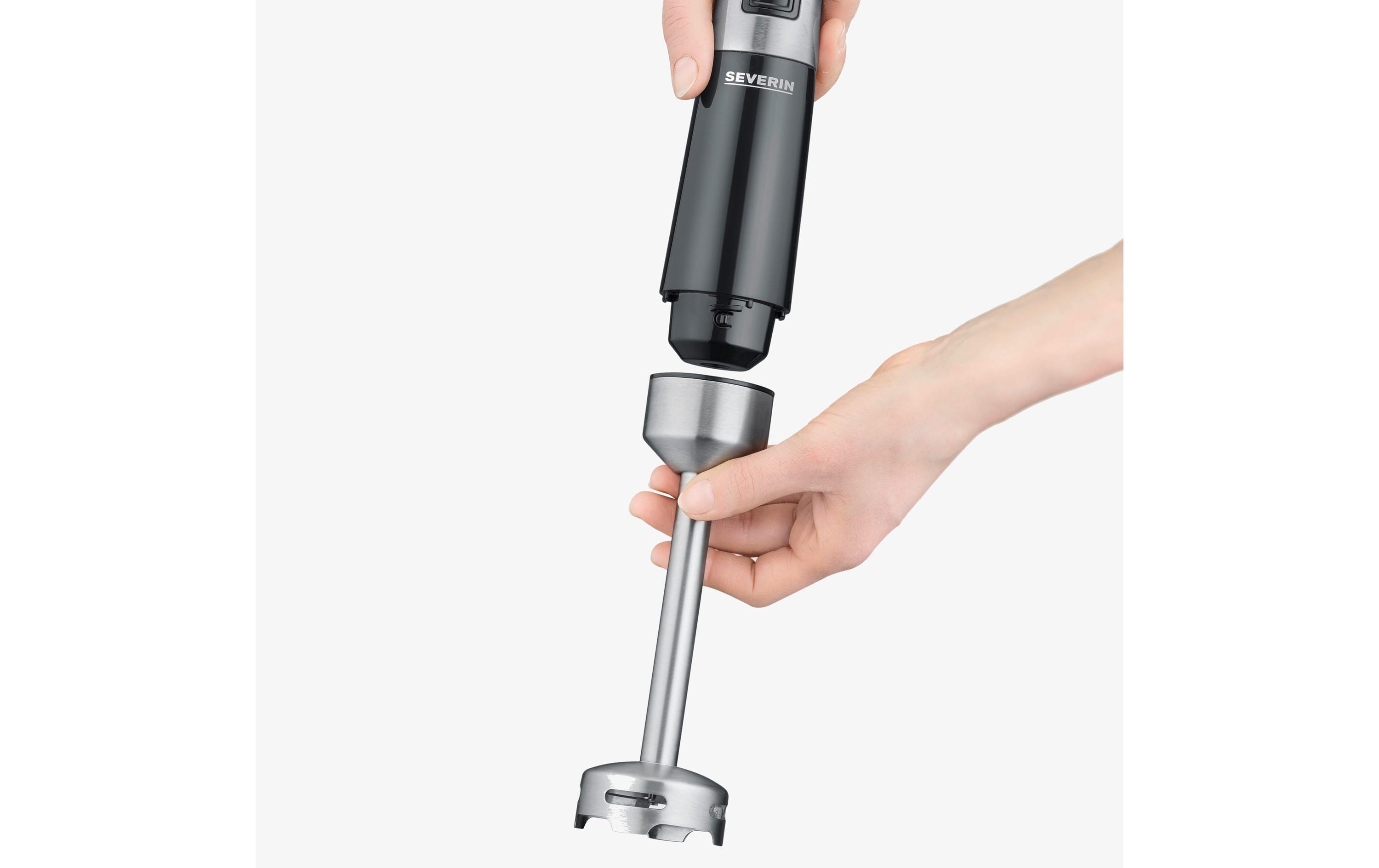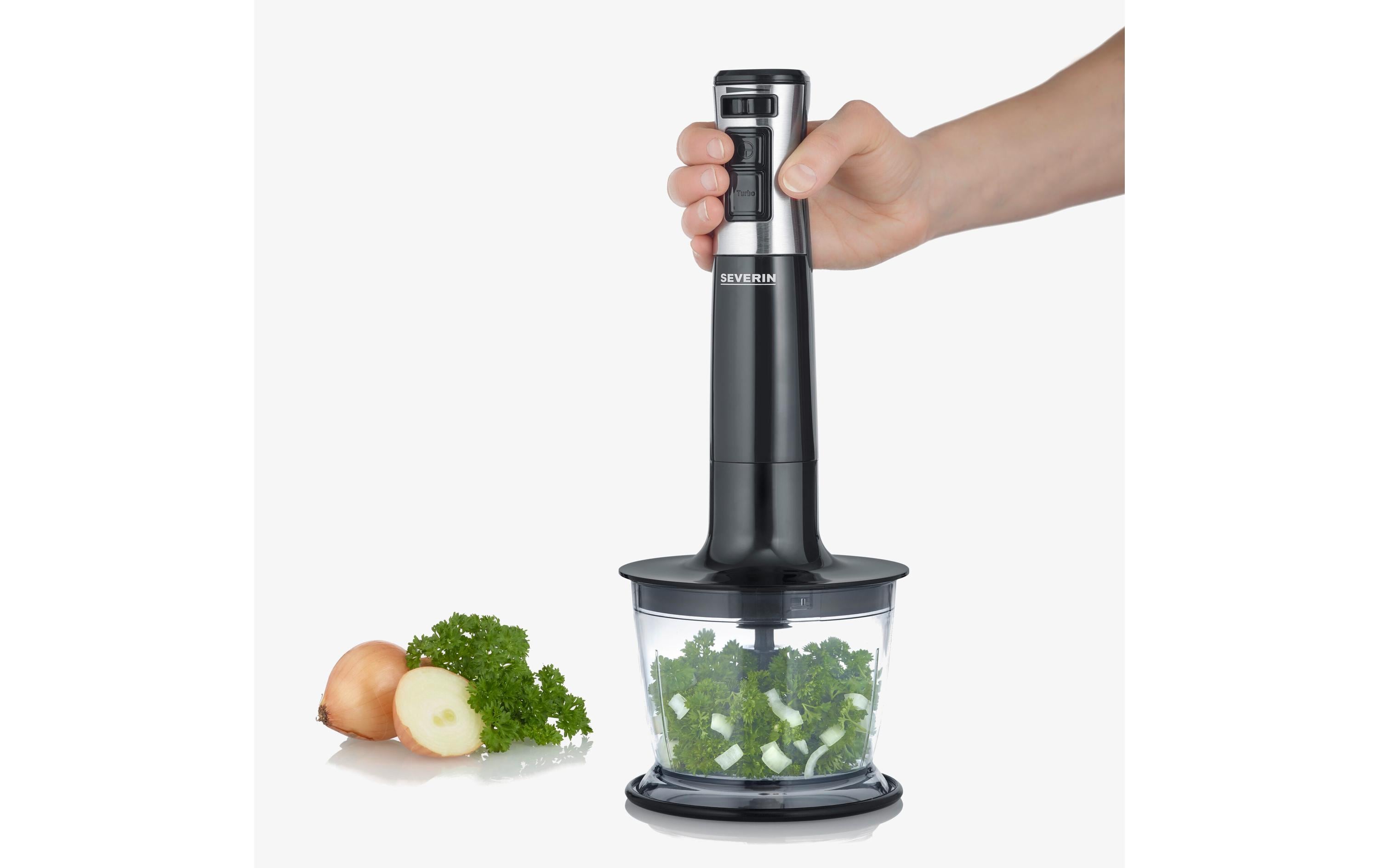 Der SM3772 Stabmixer mit Zubehör-Set von Severin vereint kraftvolle Leistung mit einem durchdachten Design, um Ihnen feinste Pürierergebnisse im Handumdrehen zu ermöglichen. Mit seinem ergonomischen Aufbau und dem abnehmbaren Edelstahl-Rührstab bietet dieses Küchengerät nicht nur erstklassige Ergebnisse, sondern auch eine mühelose Reinigung und höchsten Komfort. Der SM3772 Stabmixer von Severin ist ein leistungsstarkes Küchengerät, das mit 600 Watt beeindruckende Power bietet. Mit diesem Stabmixer erreichen Sie feinste Pürierergebnisse im Handumdrehen. Sein ergonomisches Design und der abnehmbare Edelstahl-Rührstab machen nicht nur die Bedienung komfortabel, sondern ermöglichen auch eine mühelose Reinigung nach dem Gebrauch.Das Zubehör-Set, das im Lieferumfang enthalten ist, erweitert die Funktionalität dieses Stabmixers erheblich. Der Multizerkleinerer mit einer Kapazität von 0,5 Litern eignet sich hervorragend zum Zerkleinern von Kräutern, Zwiebeln, Fleisch, Käse, Mandeln / Nüssen und vielem mehr. Der Mixbehälter mit Deckel (0,7 Liter Kapazität) ist ideal für einzelne Mixvorgänge und ermöglicht ein einfaches Servieren. Darüber hinaus enthält das Zubehör-Set einen Schneebesen, der sich perfekt für die Zubereitung von Schlagsahne, Eischnee und anderen leckeren Kreationen eignet. Dieser Stabmixer ist zu 100% BPA-frei, was bedeutet, dass er einen gesundheitlich unbedenklichen Genuss gewährleistet. Mit dem SM3772 Stabmixer mit Zubehör-Set holen Sie sich nicht nur einen leistungsstarken Küchenhelfer, sondern auch ein vielseitiges Werkzeug für unterschiedlichste Zubereitungen in Ihre Küche.