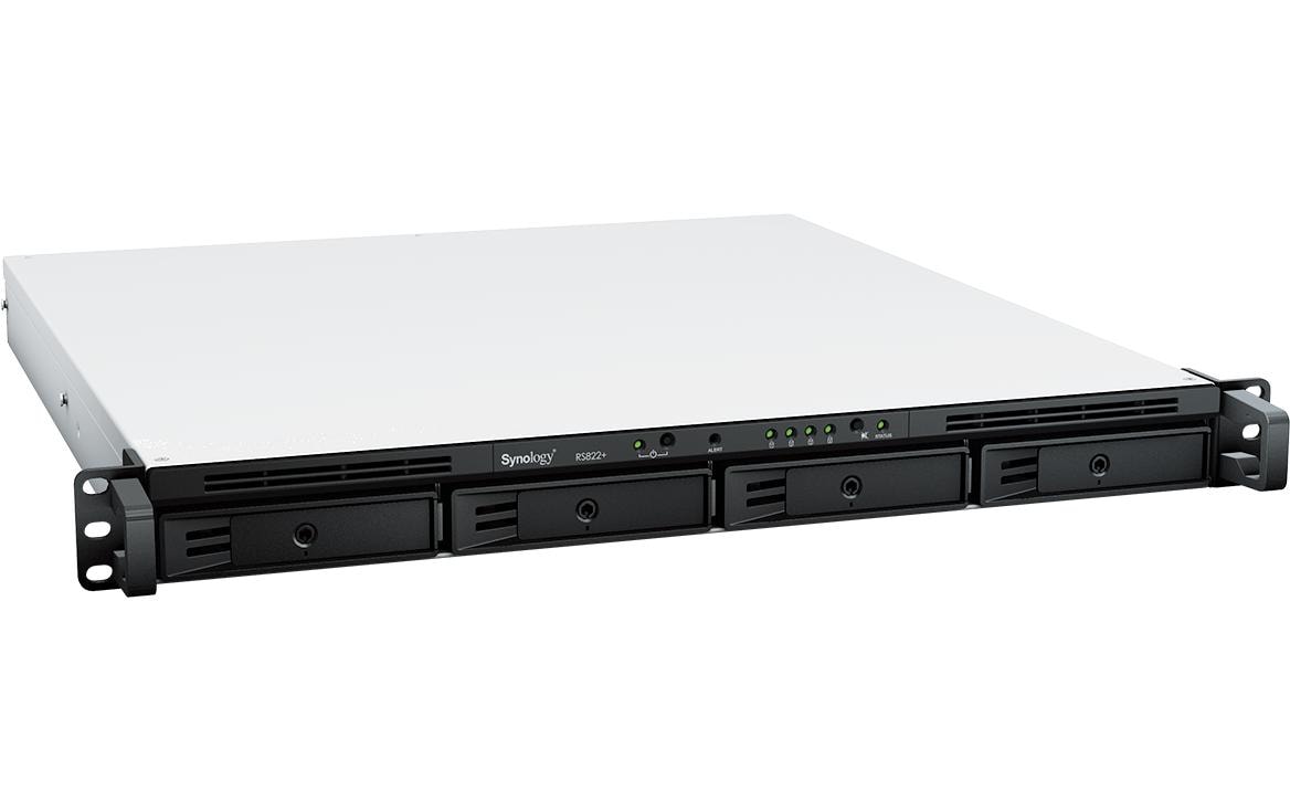 Die Synology RackStation RS822+/RS822RP+ ist ein Rackmount-NAS mit 4 Einschüben in einem kompakten 1U-Gehäuse. Ausgeführt mit dem leistungsstarken Synology DiskStation Manager (DSM) Betriebssystem Betriebssystem läuft, ist es ideal für Datensicherung, Freigabe und Synchronisierung. Ihre geringe Grösse, stabile Leistung und die Skalierbarkeit des Speichers machen für Zweigstellen und kleine und mittlere und mittelständische Unternehmen mit ständig wachsenden Anforderungen an die Datenverwaltung.