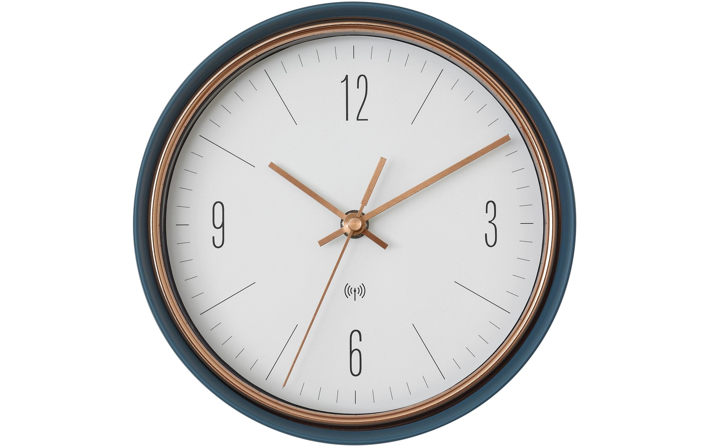 Wenn Sie Ihr Zuhause oder Büro gern mit stilvollen Details schmücken, werden Ihre Wände diese Funkuhr lieben. Mit ihren kupferfarbenen Applikationen ist sie ein stylischer Hingucker.