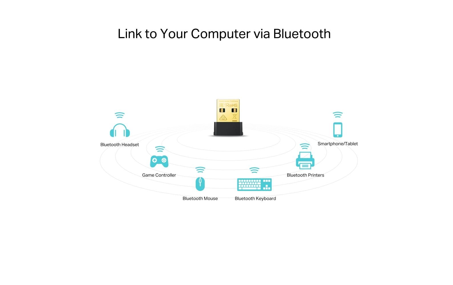 Archer T2UB Nano macht aus einem nicht-bluetoothfähigen PC oder Laptop einen Bluetooth-fähigen. Schliessen Sie einfach Ihre Bluetooth-Geräte an Ihren Computer an und geniessen Sie sie mit Leichtigkeit. Er unterstützt maximal 7 Bluetooth-Geräte.