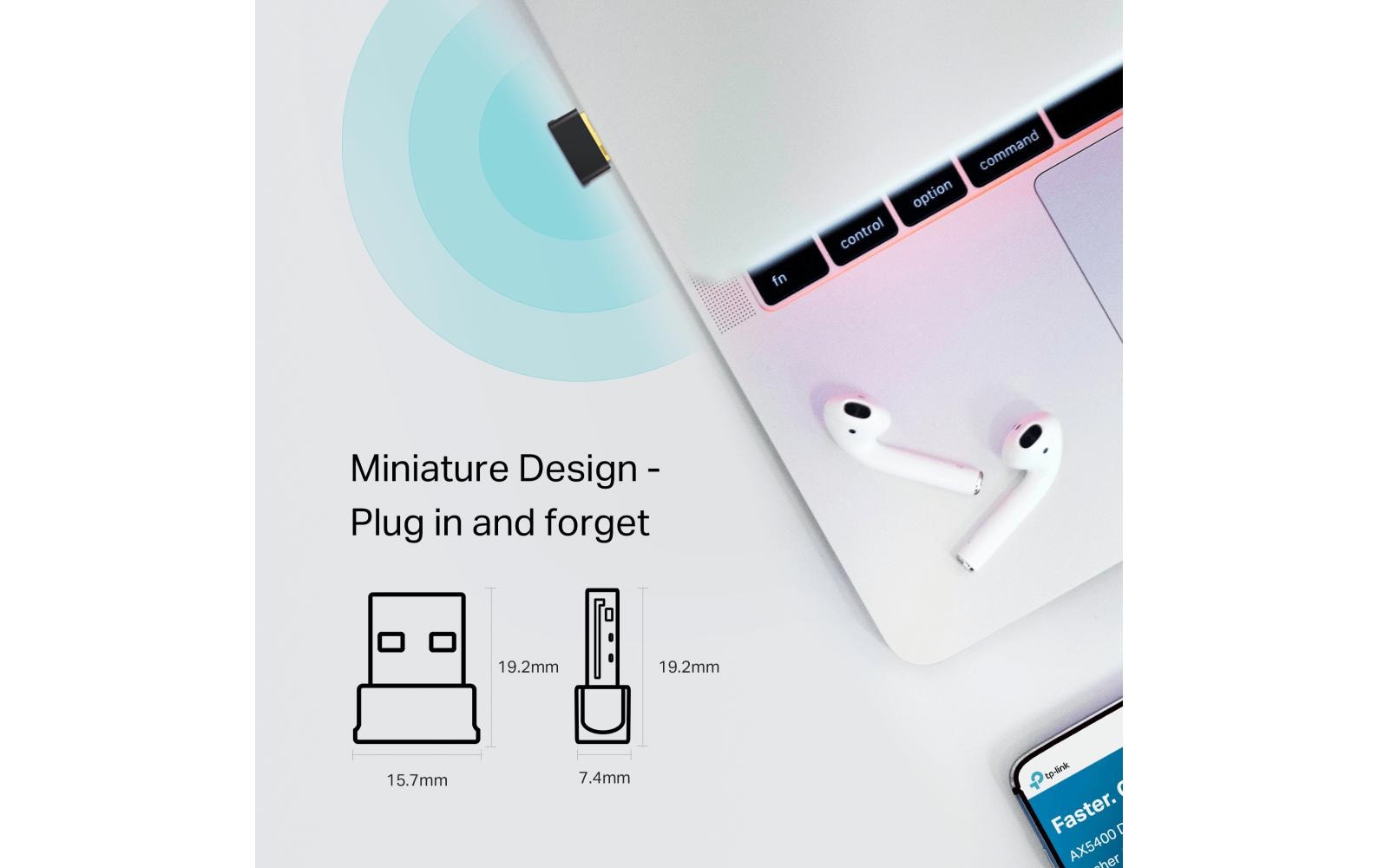 Dank seiner geringen Grösse und seines schlanken Designs können Benutzer den Nano-Adapter in jeden USB-Anschluss einstecken und ihn dort belassen, egal ob sie unterwegs oder zu Hause sind.