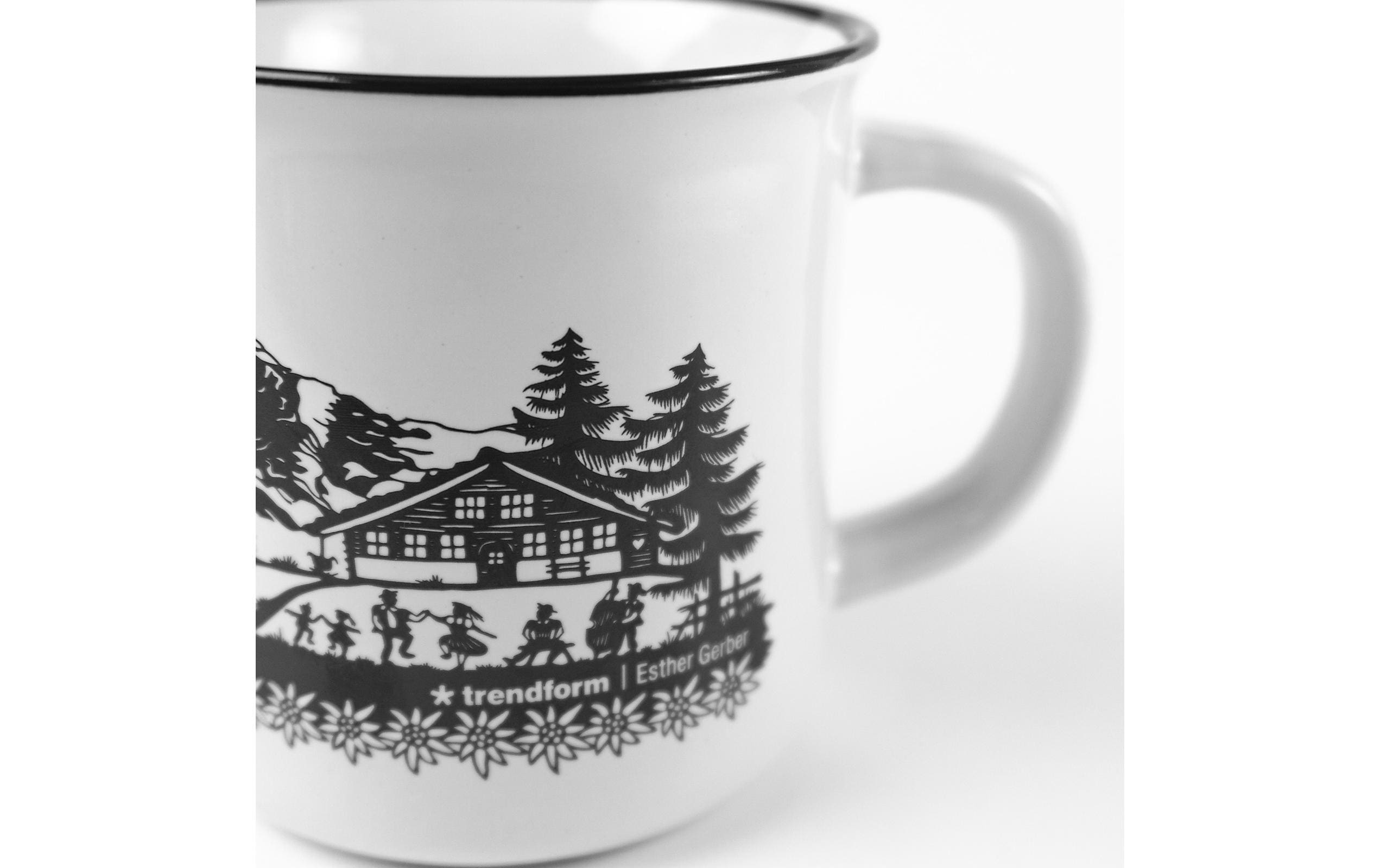 Hochwertige Keramiktasse, die nicht nur durch Kratzfestigkeit sowie Scheuerbeständigkeit glänzt. Spülmaschinenfest ist sie sowieso. Scherenschnitt by Esther Gerber.