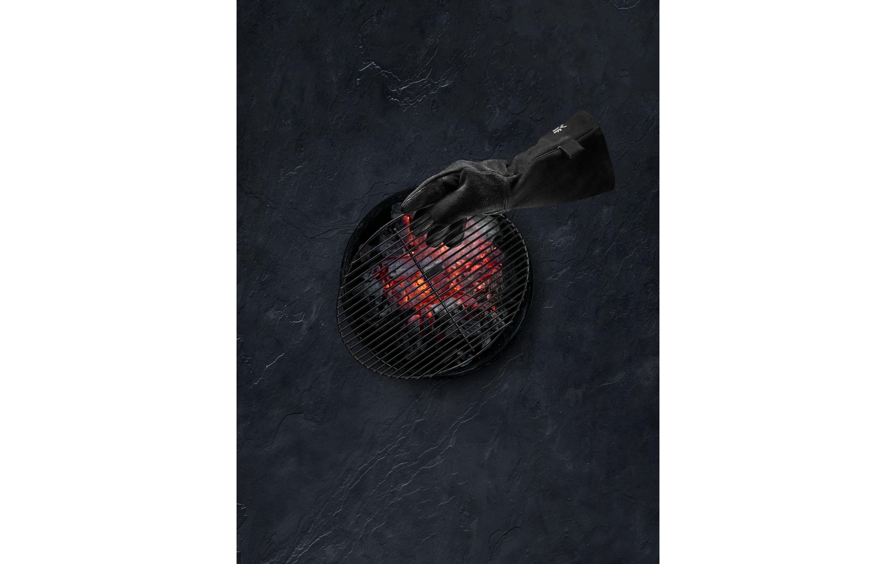 Das hitzebeständige Design schützt Hände und Unterarme effektiv vor aufsteigender Hitze, heisser Glut und Fettspritzern.